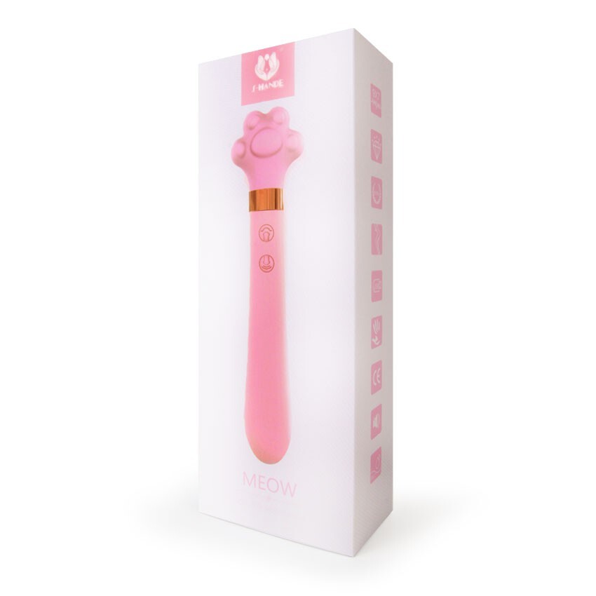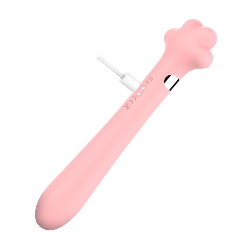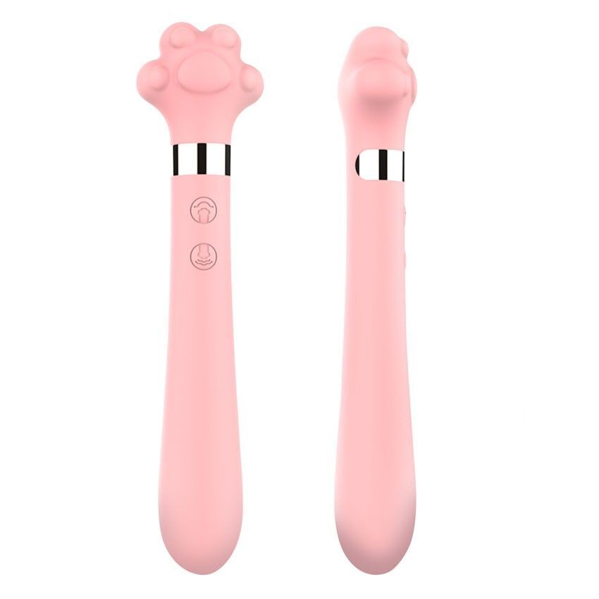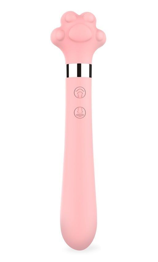 Розовый двусторонний вибромассажер Meow в форме лапки - 21 см.