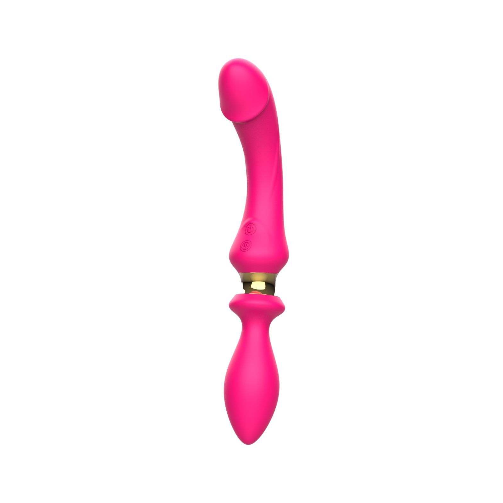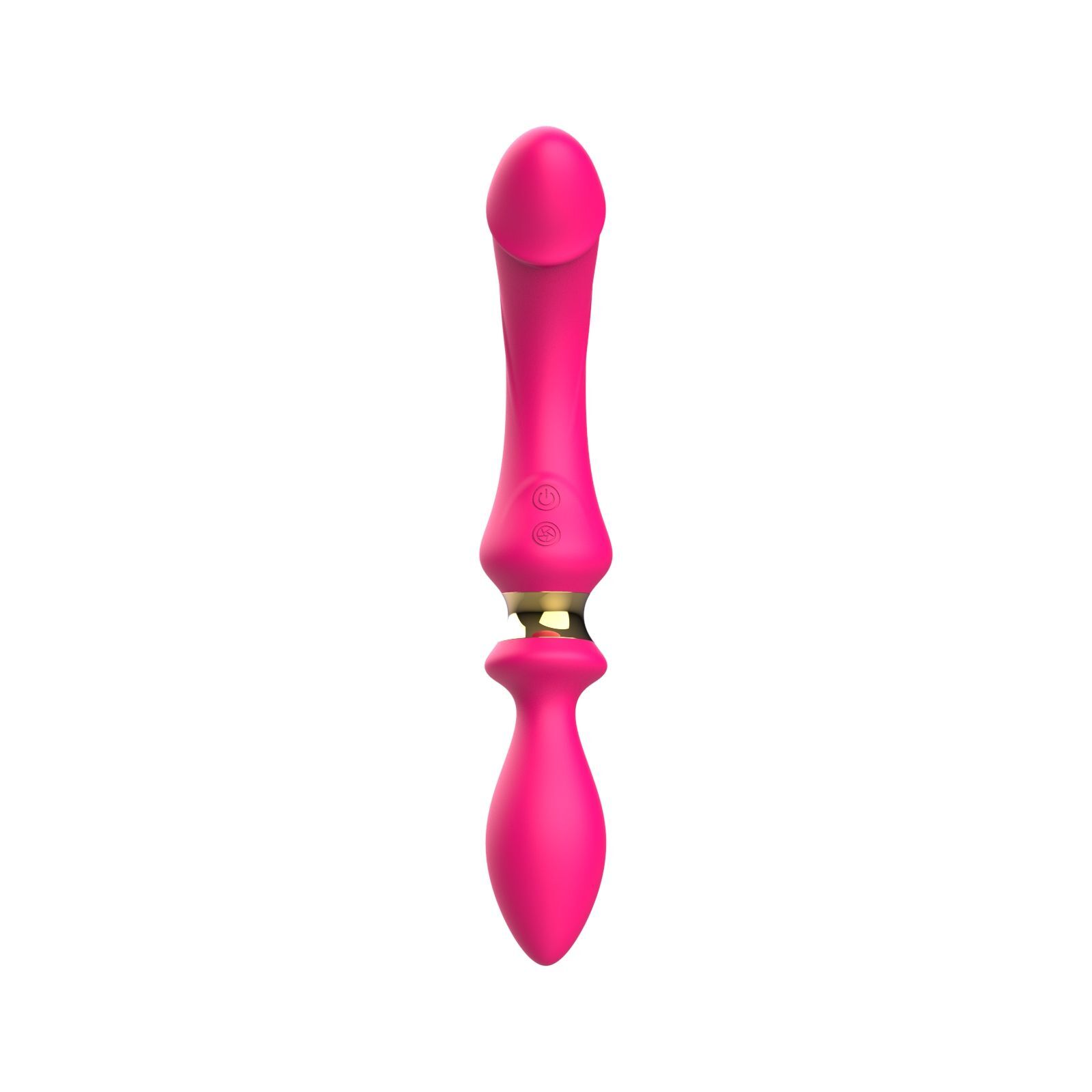 Розовый двусторонний вибромассажёр - 26,8 см.