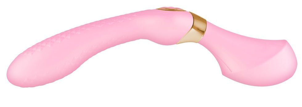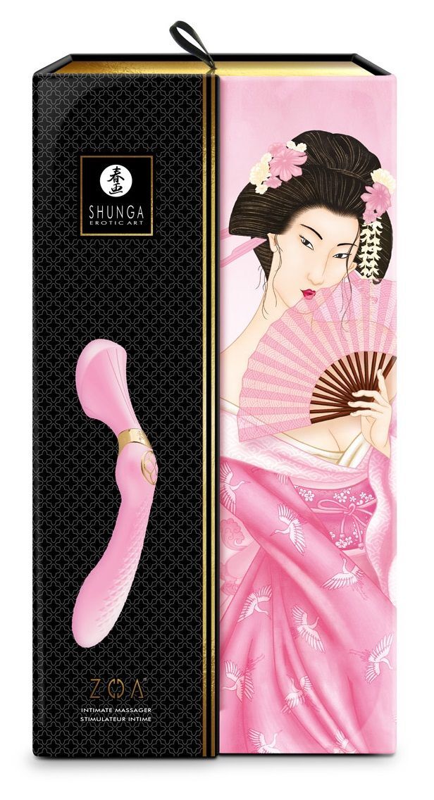 Розовый двусторонний вибростимулятор ZOA - 26,5 см.