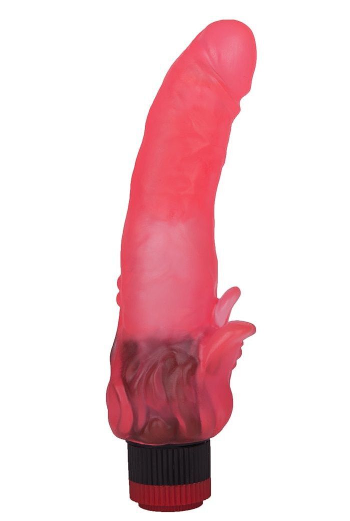 Розовый гелевый вибратор с клиторальными лепестками - 18,5 см.