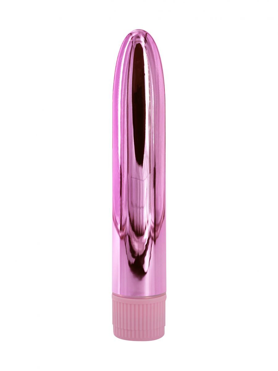 Розовый глянцевый пластиковый вибратор - 14 см.