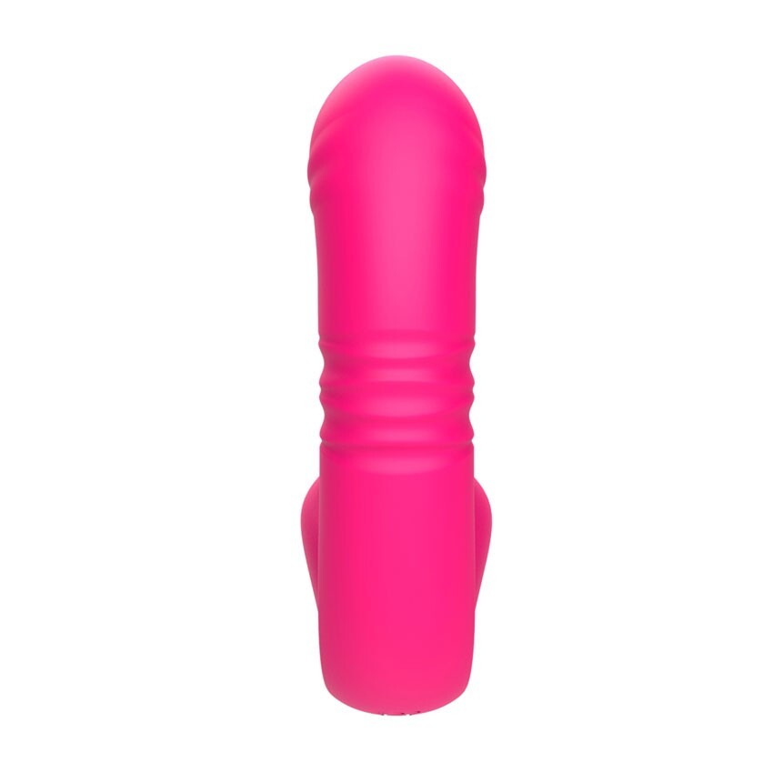 Розовый изогнутый вибратор с фрикциями - 19,7 см.