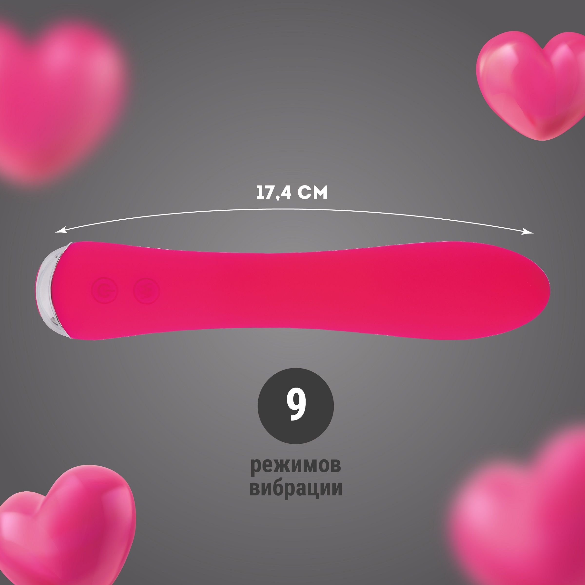 Розовый классический вибратор с функцией нагрева - 17,4 см.