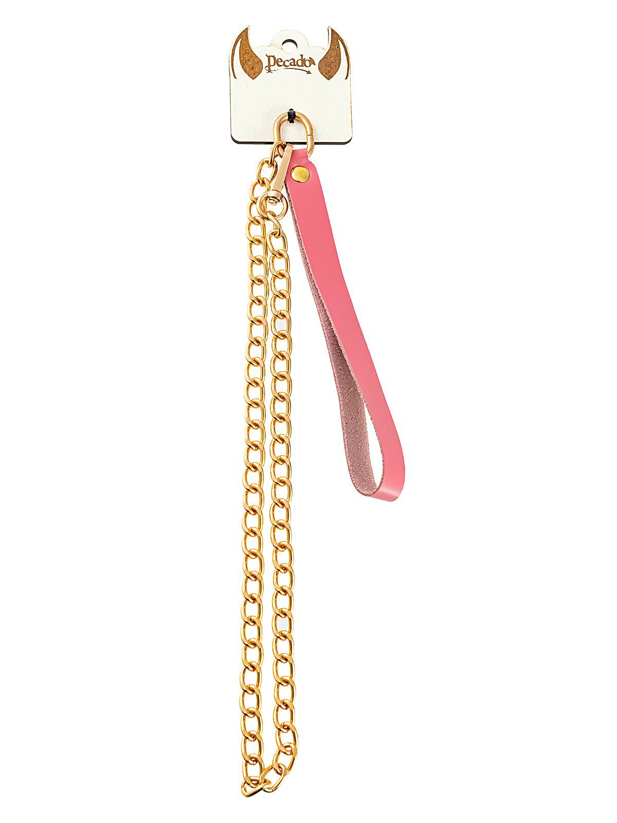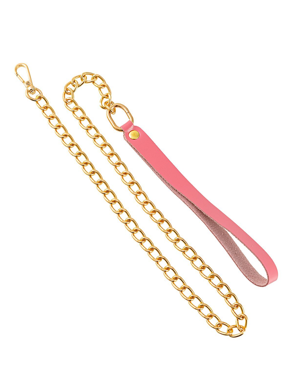 Розовый кожаный поводок с карабином для ошейника - 80 см.