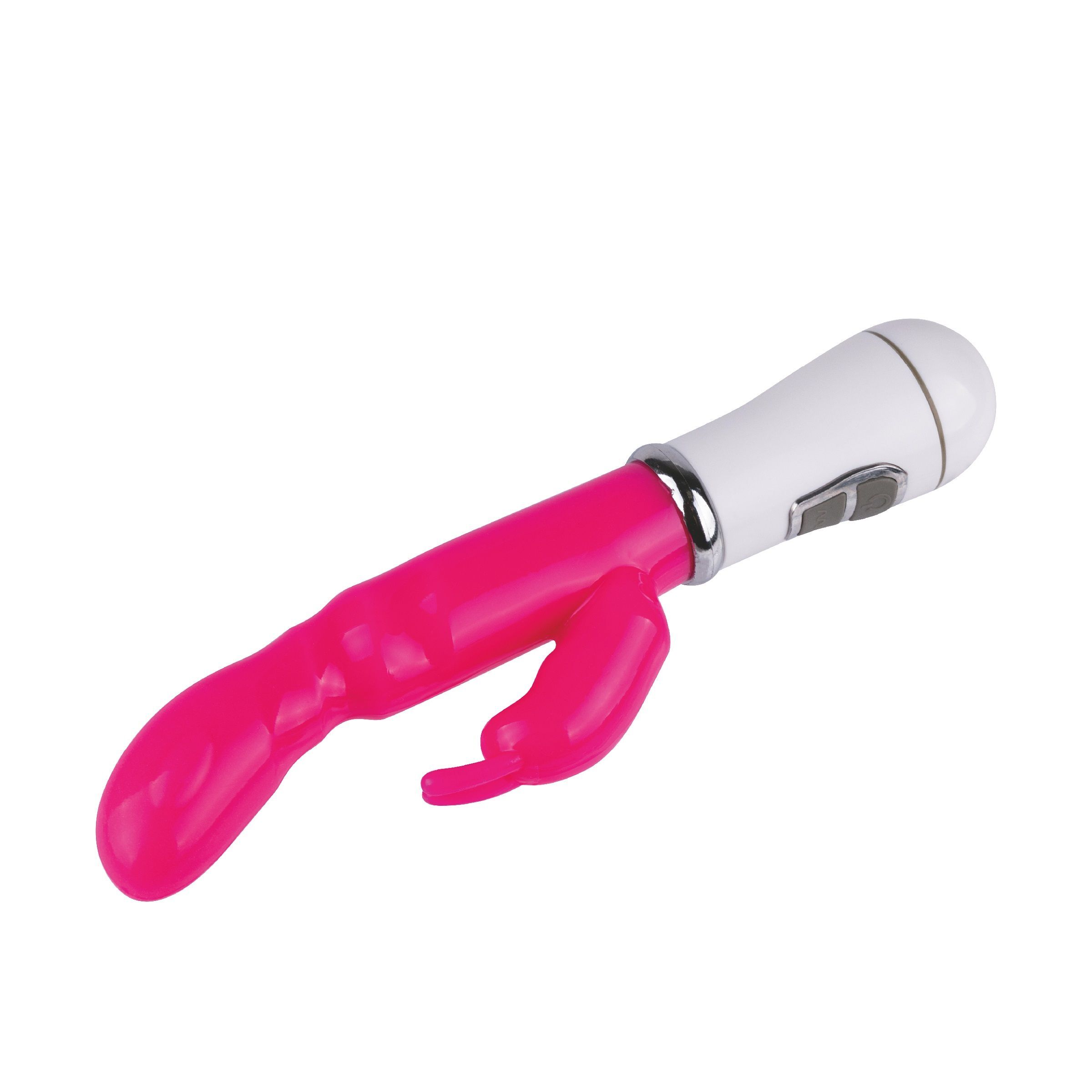Розовый силиконовый вибратор-кролик - 20,5 см.