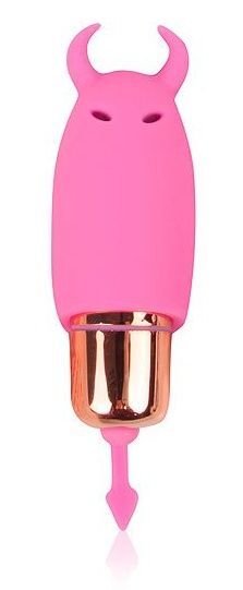 Розовый силиконовый вибромассажер с рожками - 6,4 см.