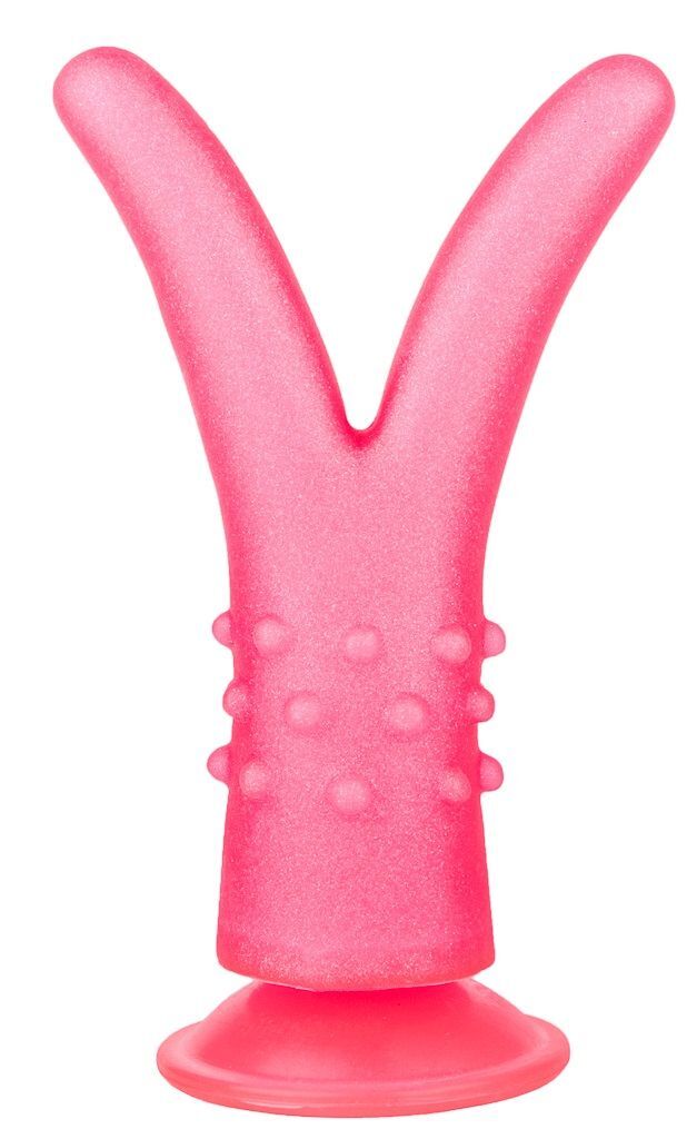 Розовый стимулятор с раздвоенным кончиком - 16 см.