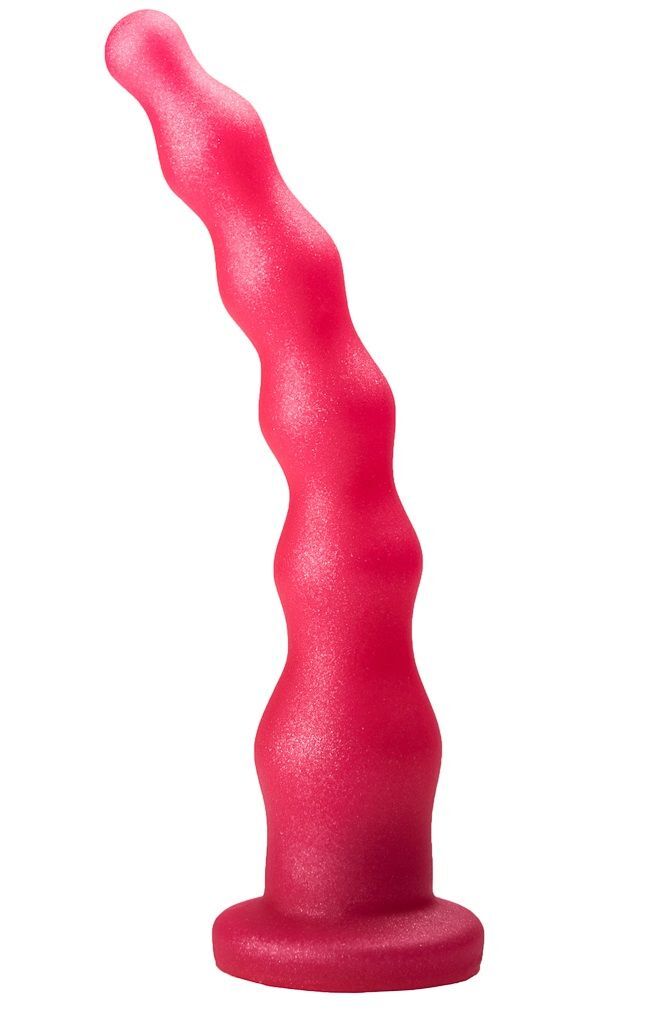 Розовый удлинённый анальный стимулятор с шариками - 22 см.