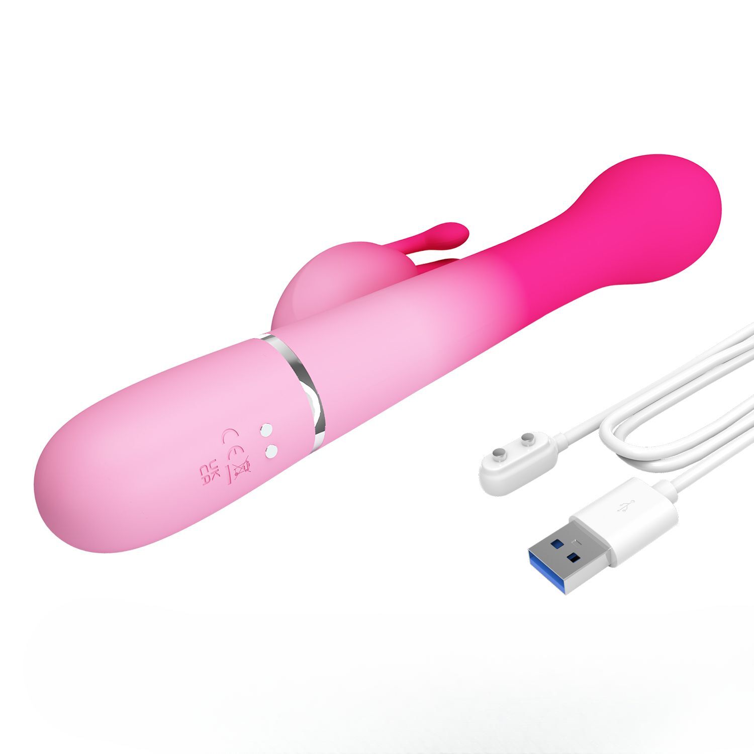 Розовый вибратор-кролик Dejon с ротацией бусин и возвратно-поступательными - 22,6 см.