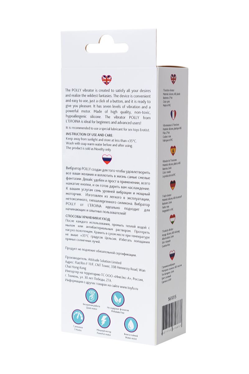 Розовый вибратор POLLY с 7 режимами вибрации - 18,3 см.