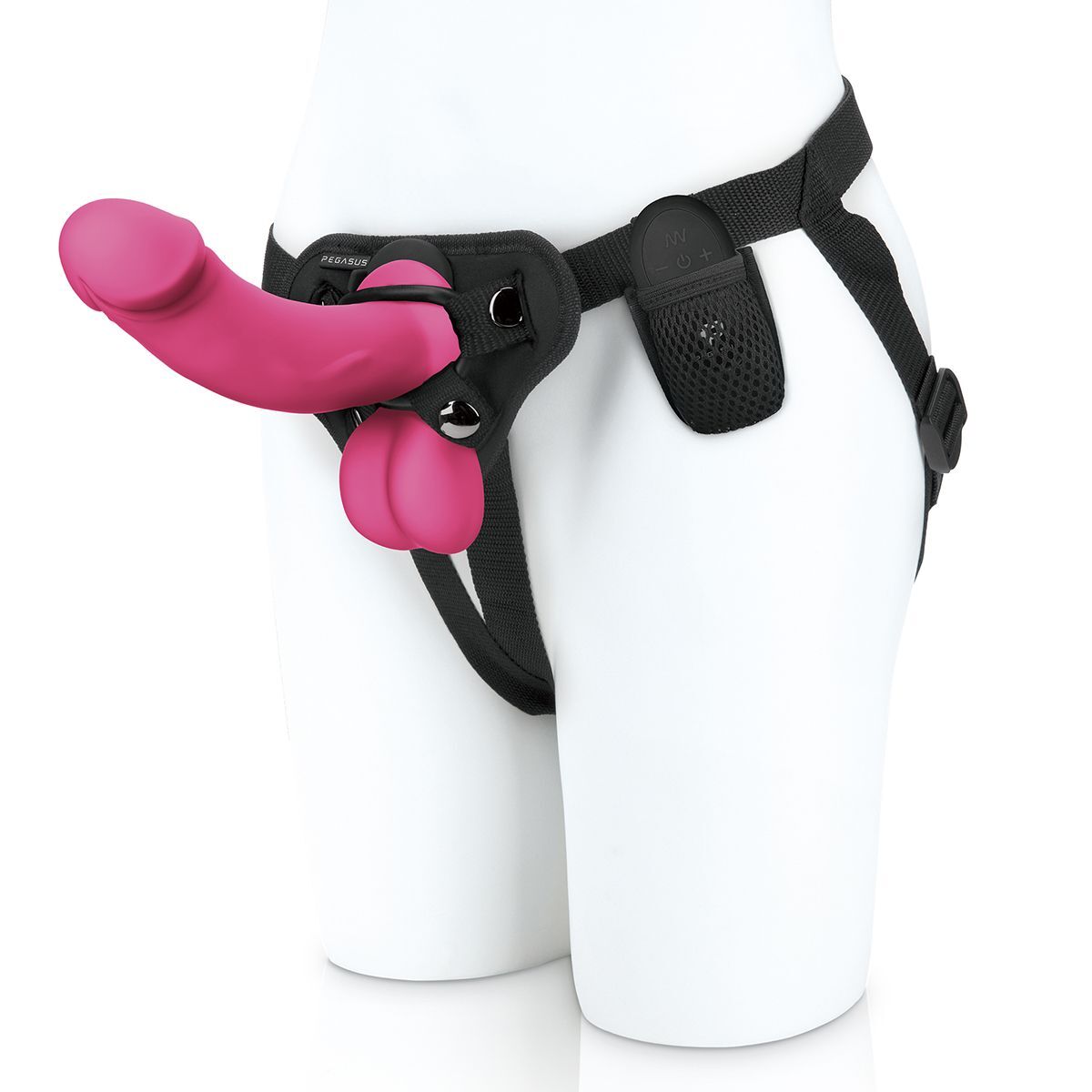Розовый вибратор-реалистик на трусиках с кольцом - 17,8 см.