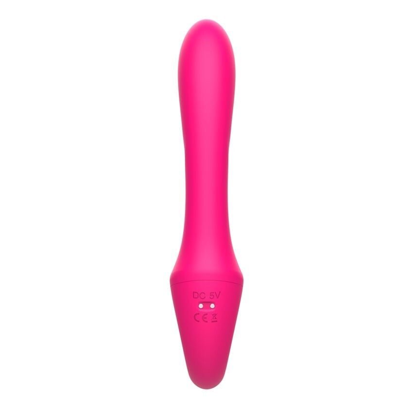 Розовый вибратор с клиторальным отростком и пультом ДУ- 19,6 см.