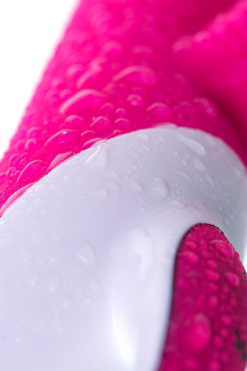 Розовый вибратор с клиторальным стимулятором ELLY с подогревом - 21,5 см.