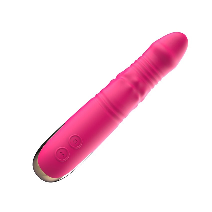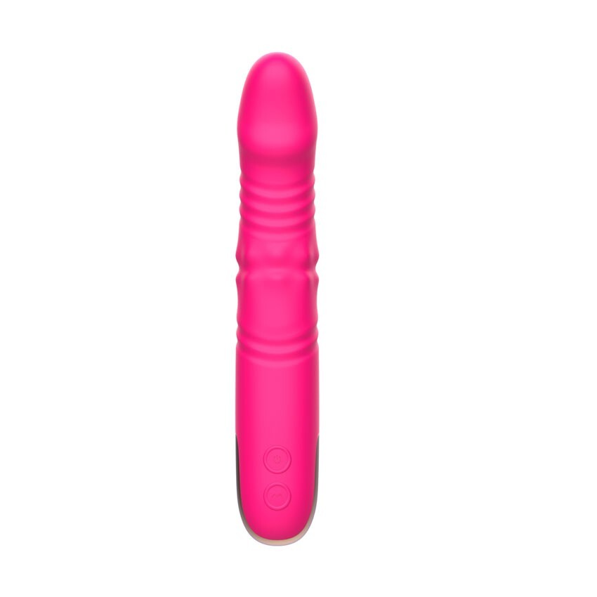 Розовый вибратор с возвратно-поступательными движениями и вращением бусин - 22,3 см.