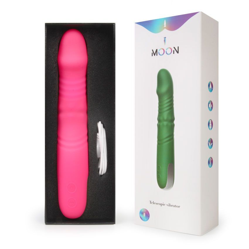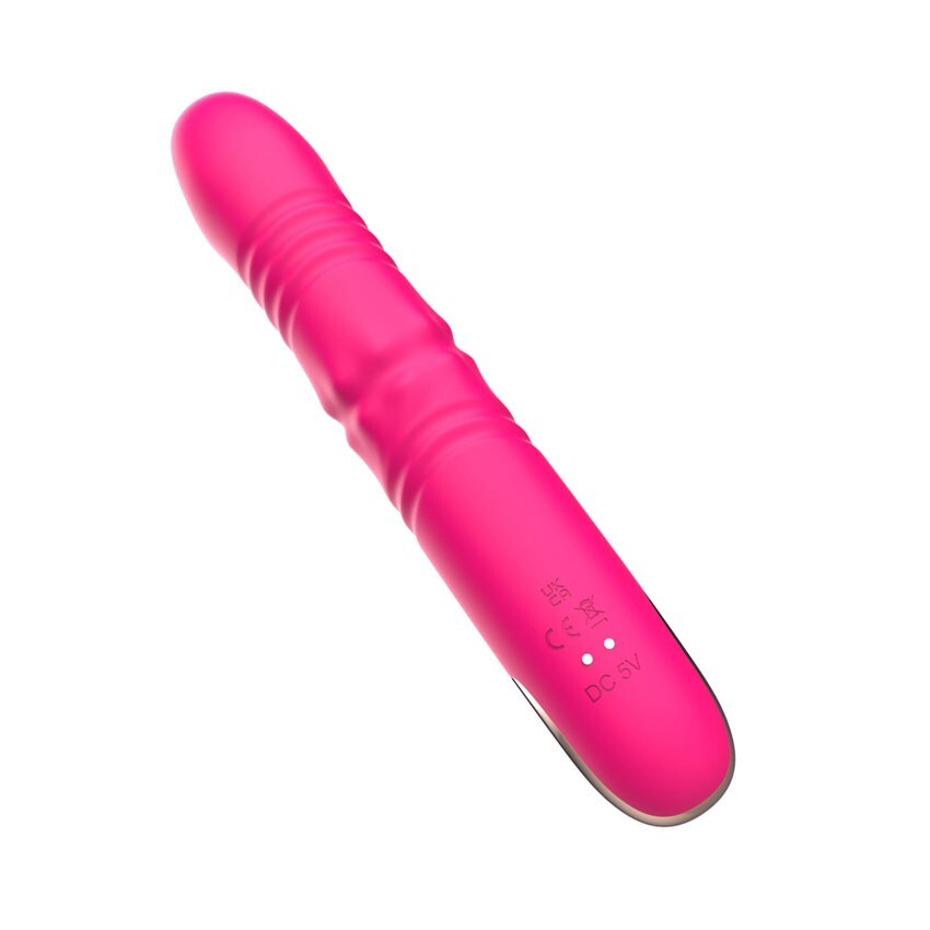 Розовый вибратор с возвратно-поступательными движениями и вращением бусин - 22,3 см.