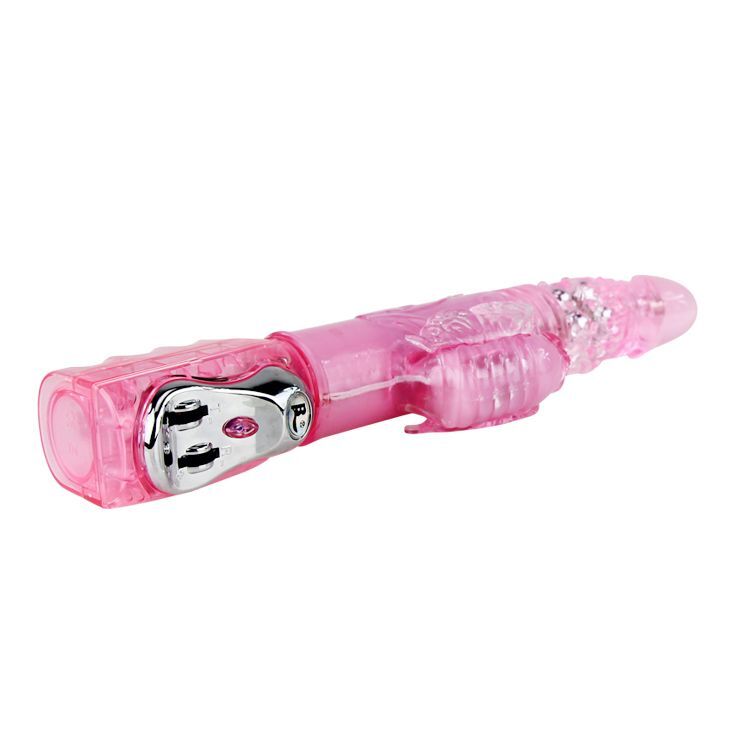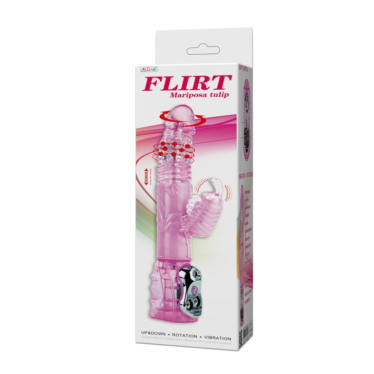 Розовый вибромассажер Mariposa Tulip с поступательными движениями и ротацией бусин - 29,5 см.