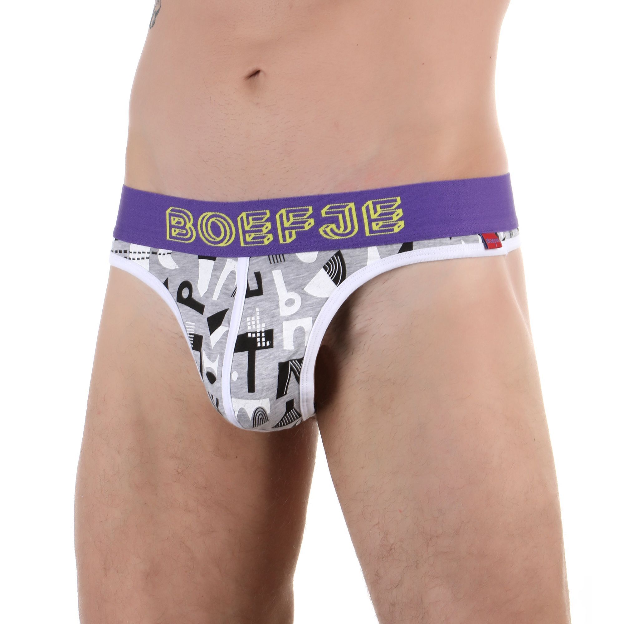 Сексуальные серые трусы-тонги с принтом в виде букв