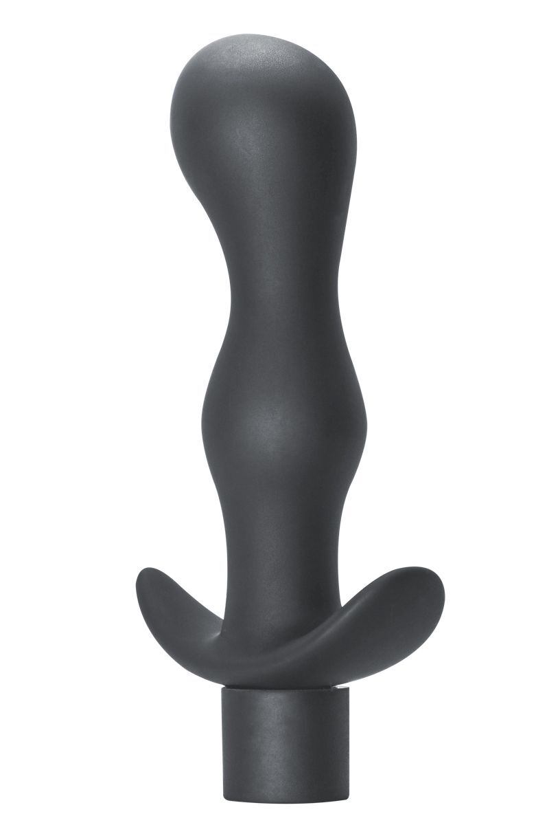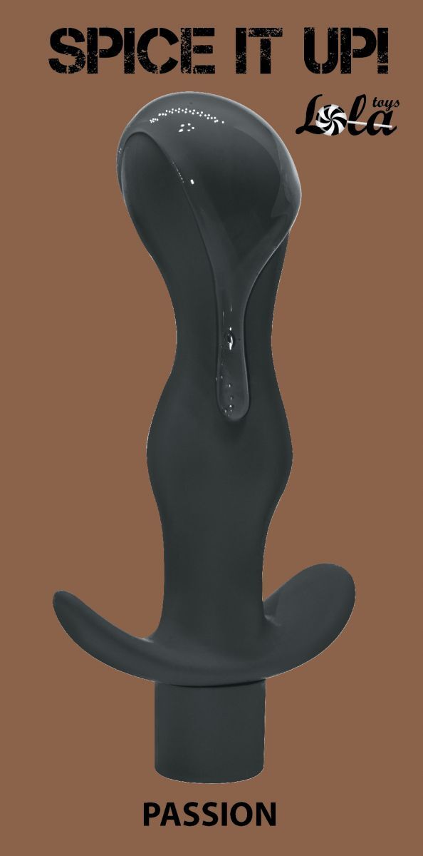 Серая фигурная анальная пробка с вибрацией Passion - 14 см.
