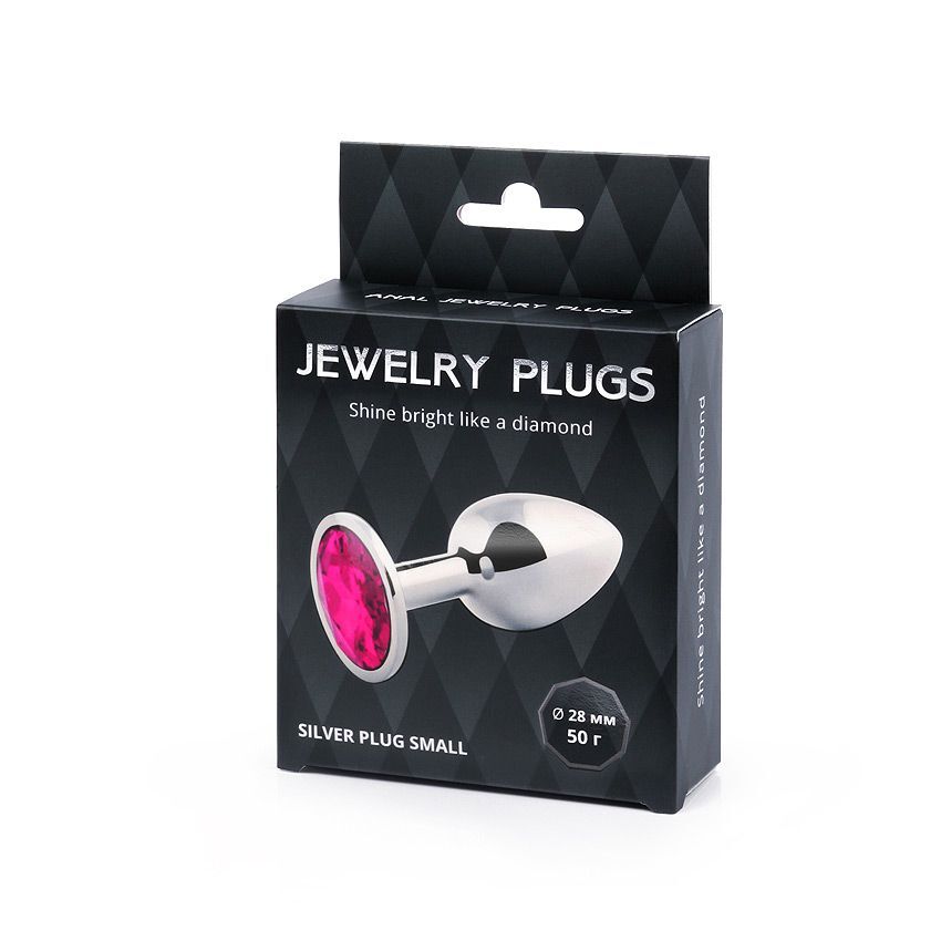 Серебристая анальная пробка с малиновым кристаллом - 7,2 см.