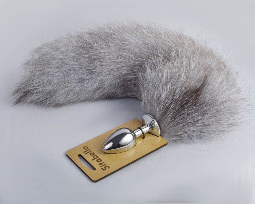 Серебристая анальная пробка с натуральным хвостиком