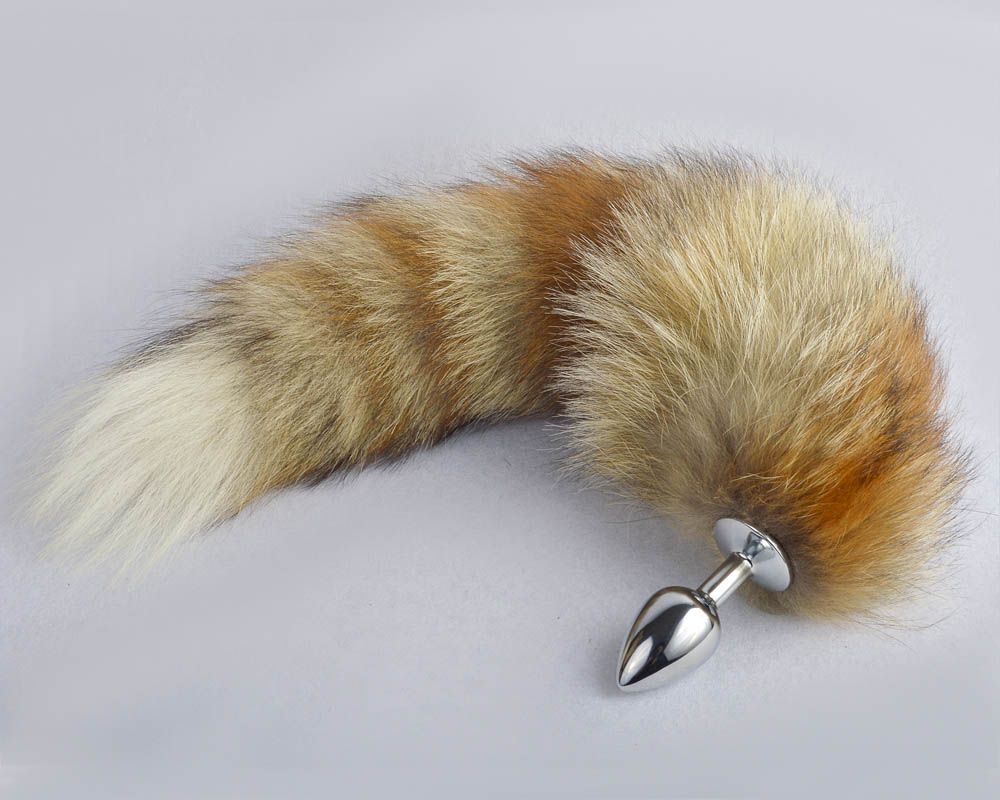 Серебристая анальная пробка с натуральным лисьим хвостом