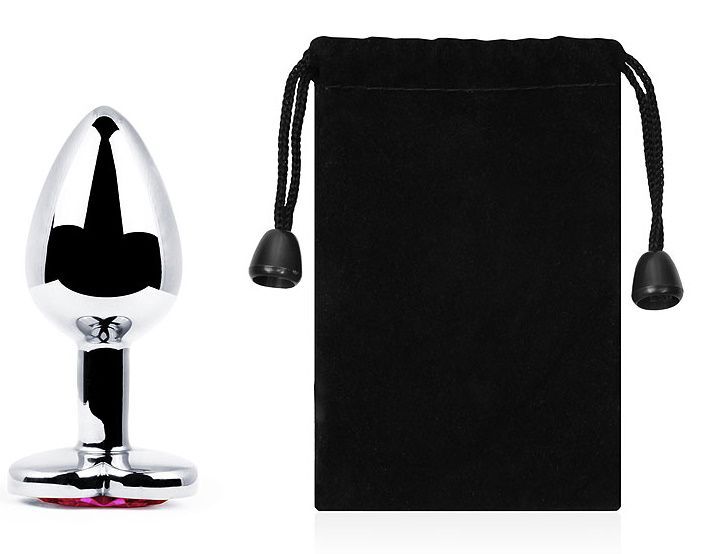 Серебристая анальная пробка с розовым кристаллом-сердечком - 7 см.