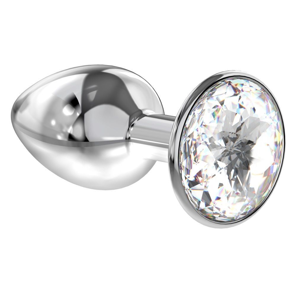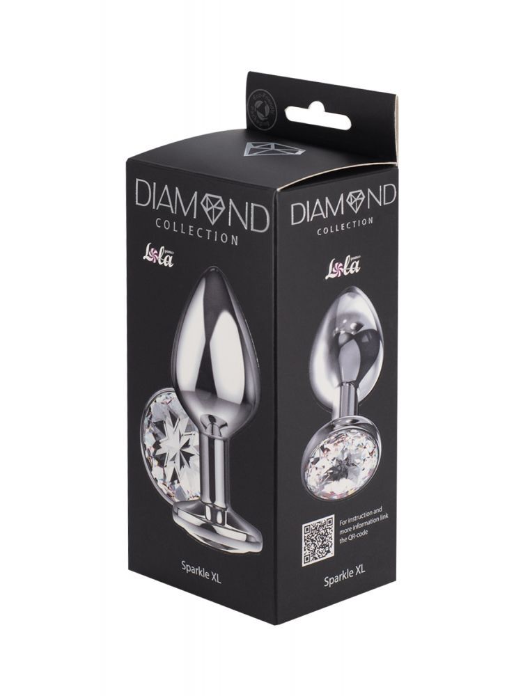 Серебристая анальная пробка Sparkle XL с прозрачным кристаллом - 11 см.
