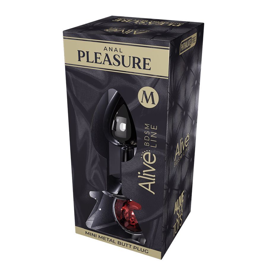 Серебристая анальная втулка Mini Metal Butt Plug Size M с красным кристаллом