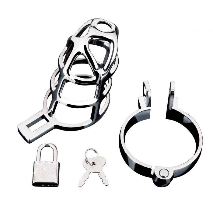 Серебристая металлическая клетка для члена с замком Enslave Cock Cage