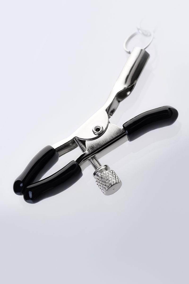 Серебристо-чёрные зажимы для сосков с кольцом для пениса TOYFA Metal