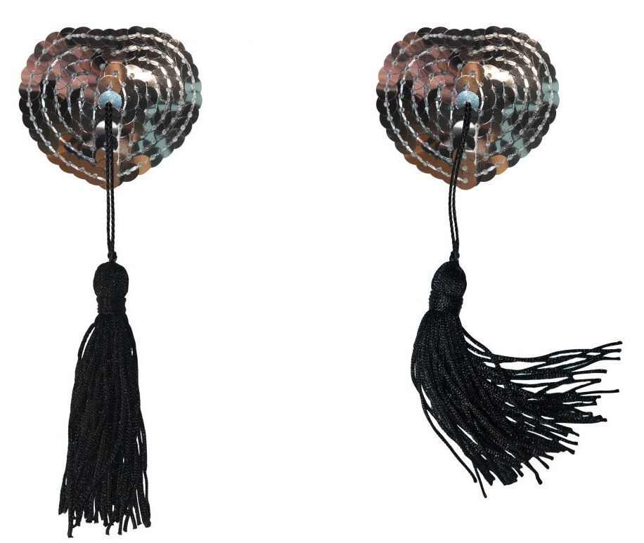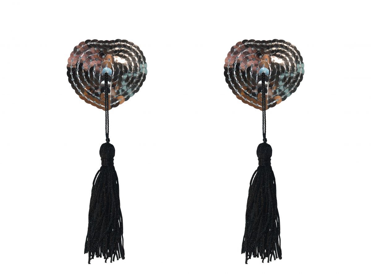 Серебристые пэстисы-сердечки Gipsy с черными кисточками