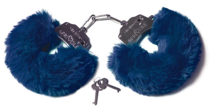 Шикарные темно-синие меховые наручники с ключиками