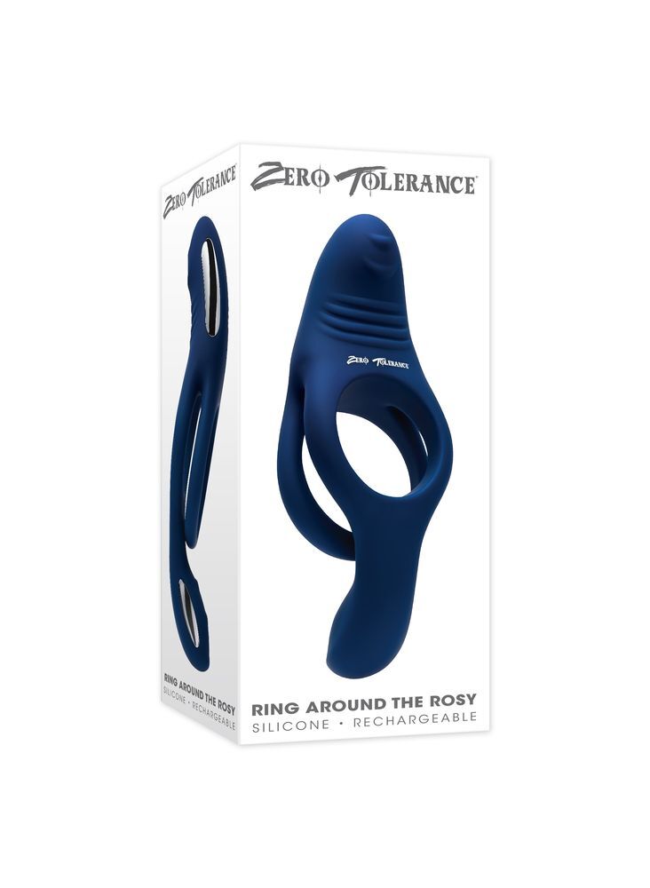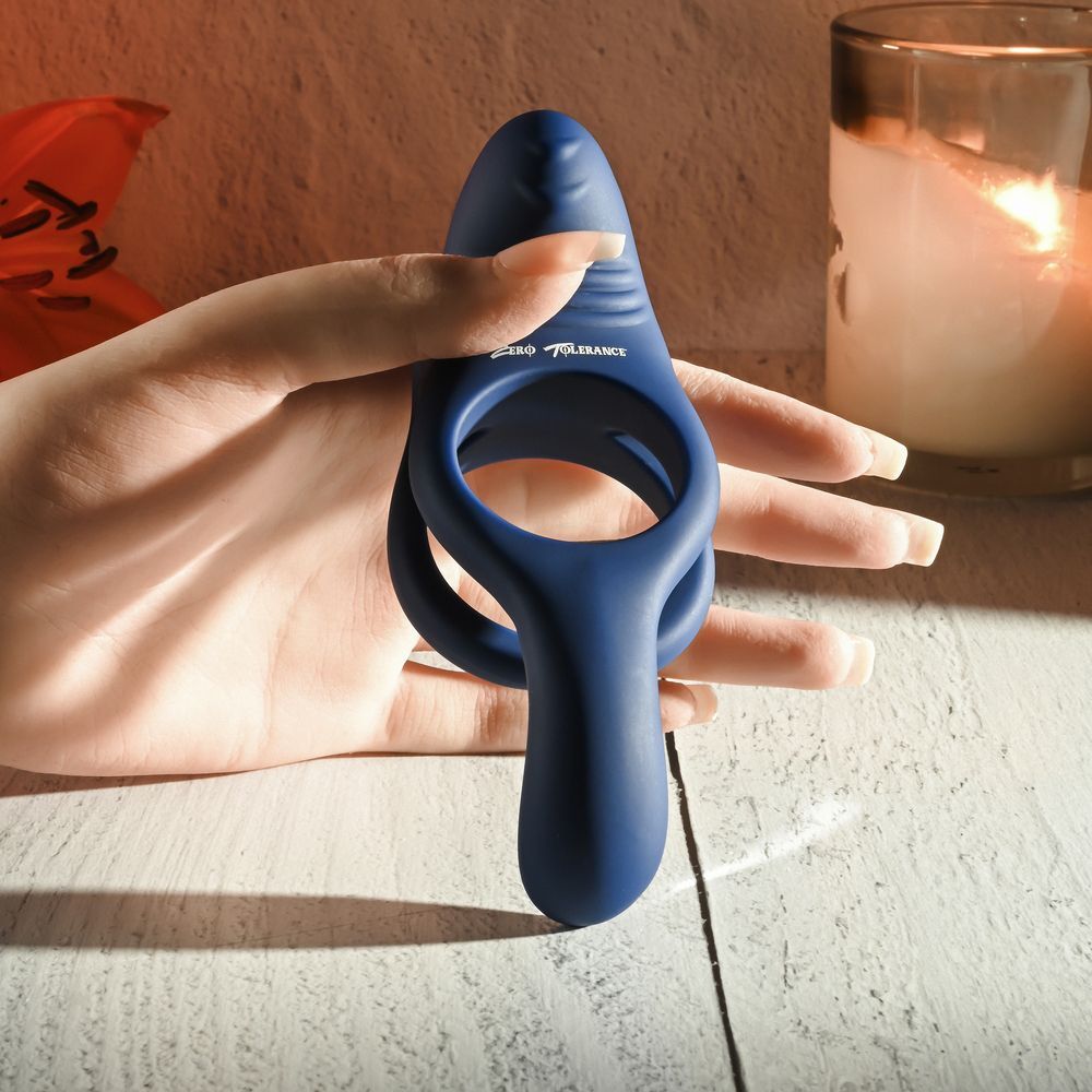 Синее эрекционное виброкольцо с двойным подхватом мошонки Ring Around The Rosy