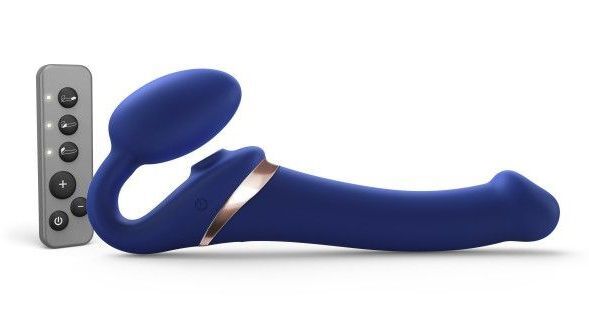 Синий безремневой страпон Multi Orgasm Size M с клиторальной стимуляцией