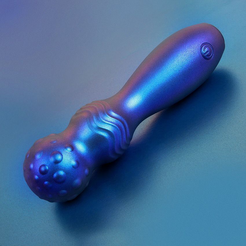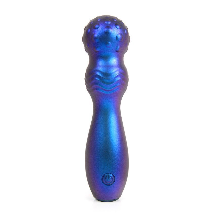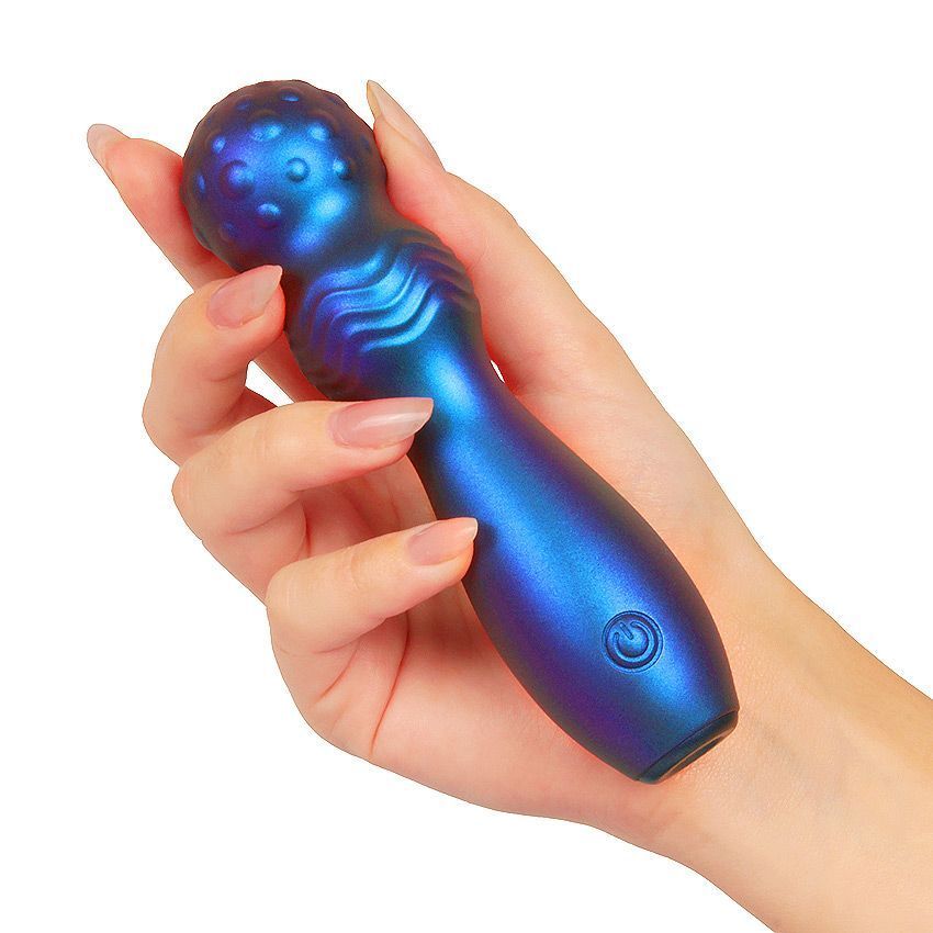 Синий фигурный вибромассажер с шаровидной головкой - 14 см.