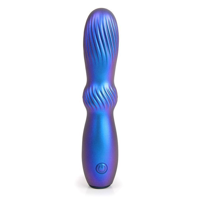 Синий фигурный вибромассажер со спиралевидным рельефом - 15 см.
