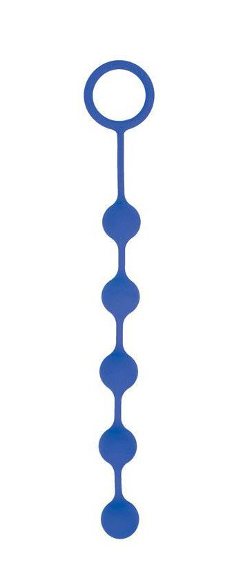 Синяя анальная цепочка с кольцом-ограничителем - 23 см.