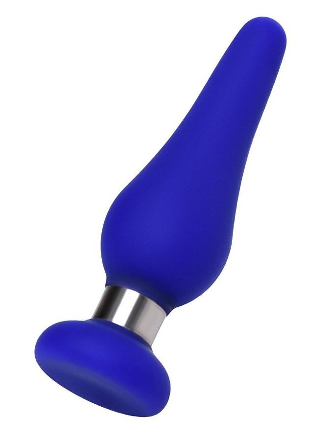 Синяя силиконовая анальная втулка с ограничителем - 10 см.