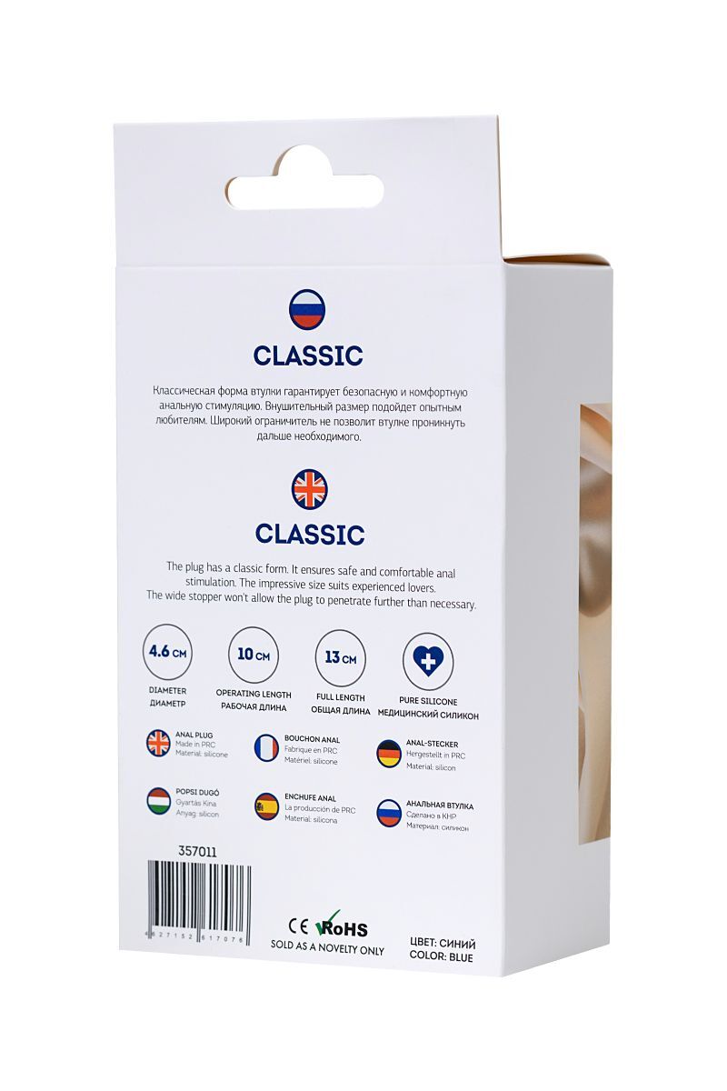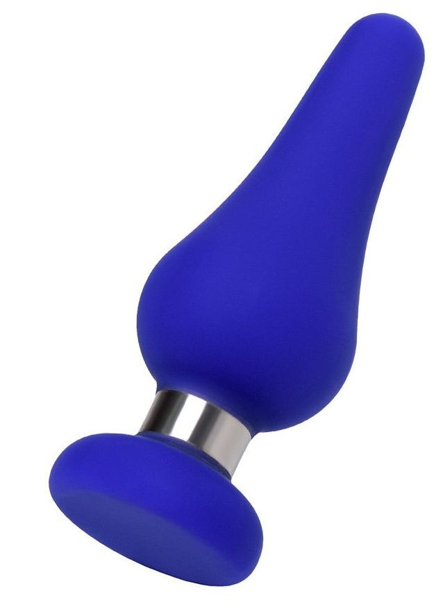 Синяя силиконовая анальная втулка с ограничителем - 13 см.
