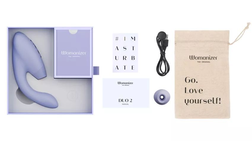 Сиреневый вибратор Womanizer Duo 2 с бесконтактной клиторальной стимуляцией