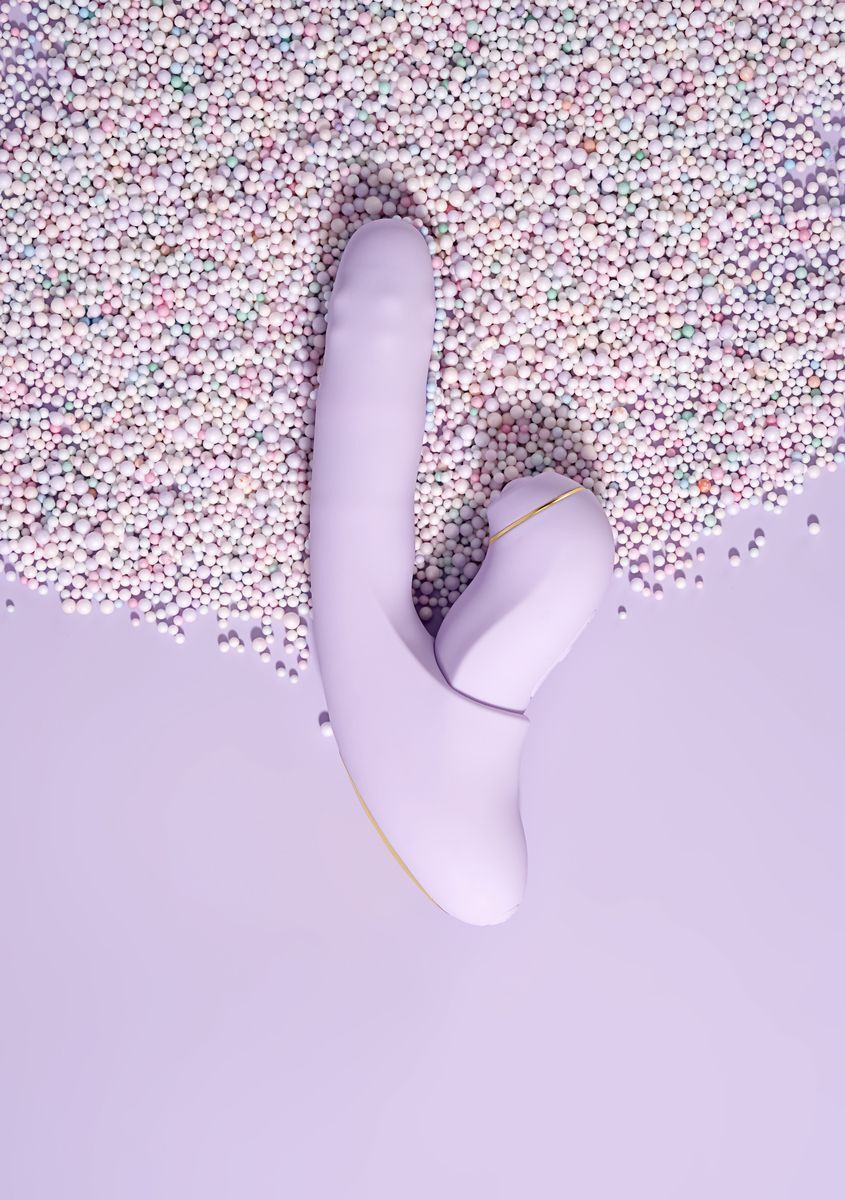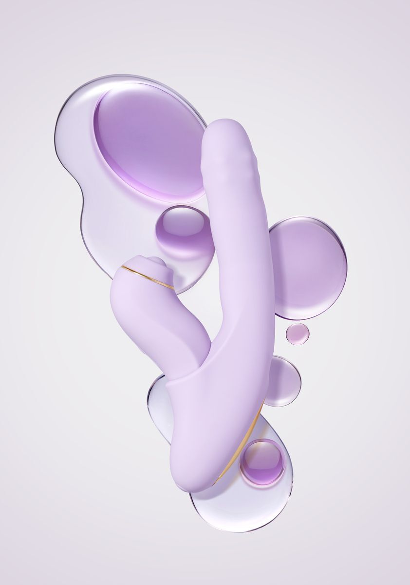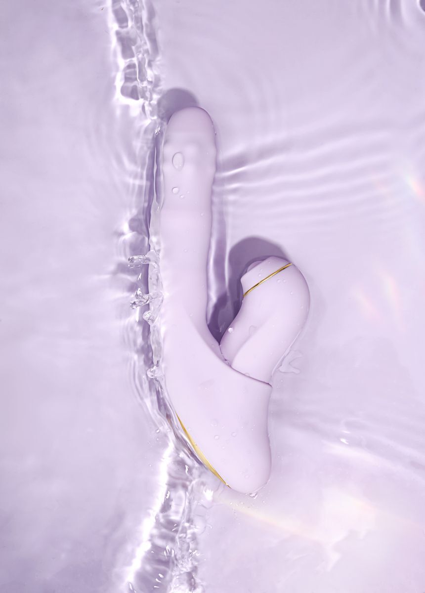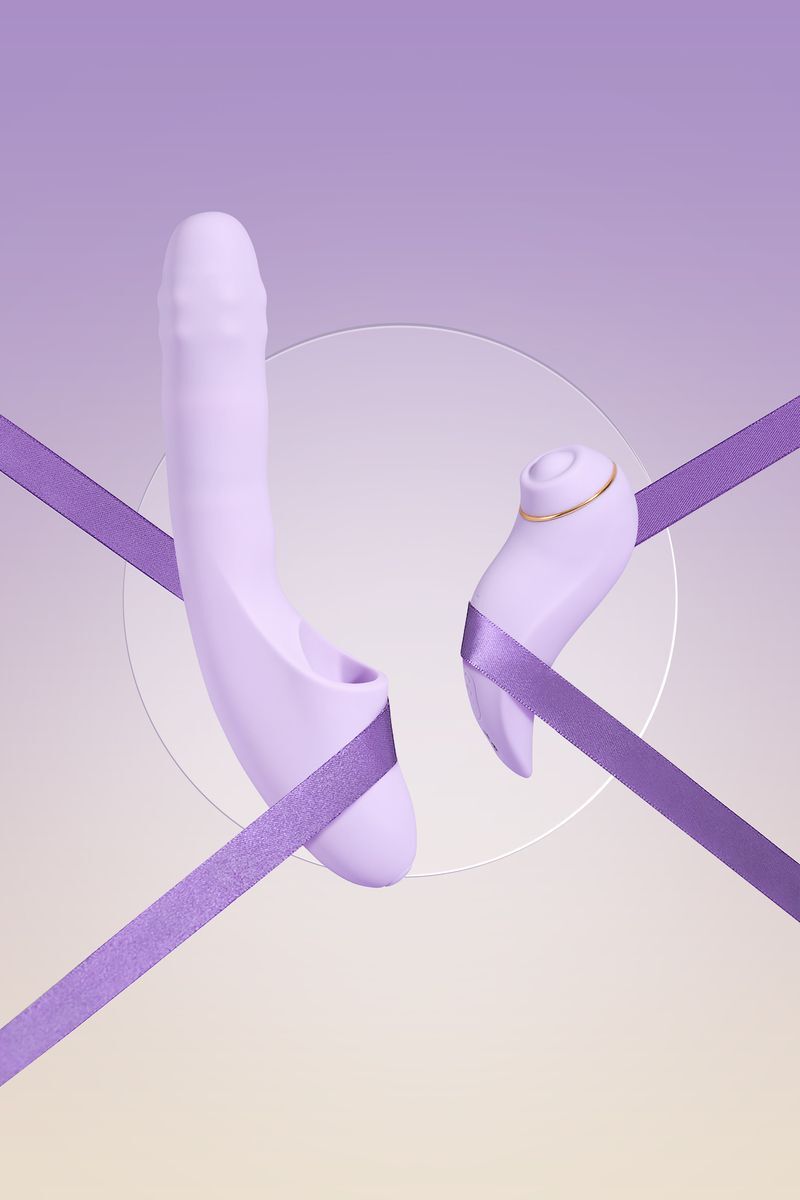 Сиреневый вибромассажер со съёмным клиторальным пульсатором DuoGlow