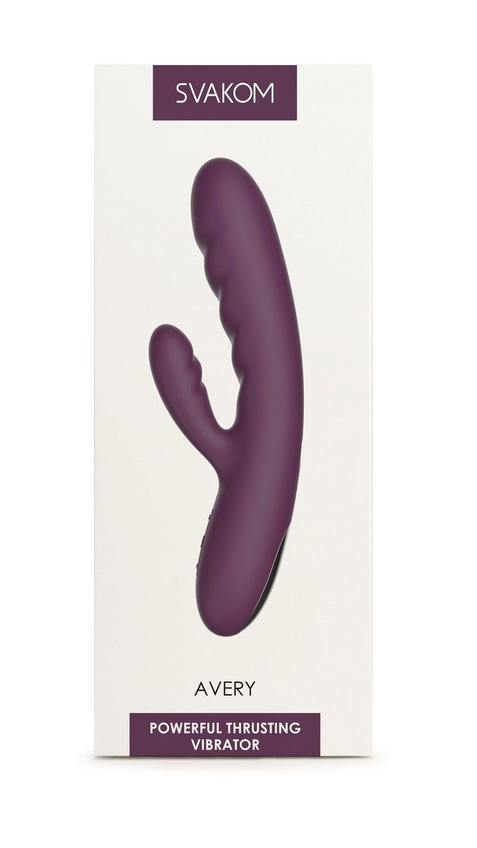 Сливовый вибратор-кролик Avery с возвратно-поступательными движениями - 18,6 см.