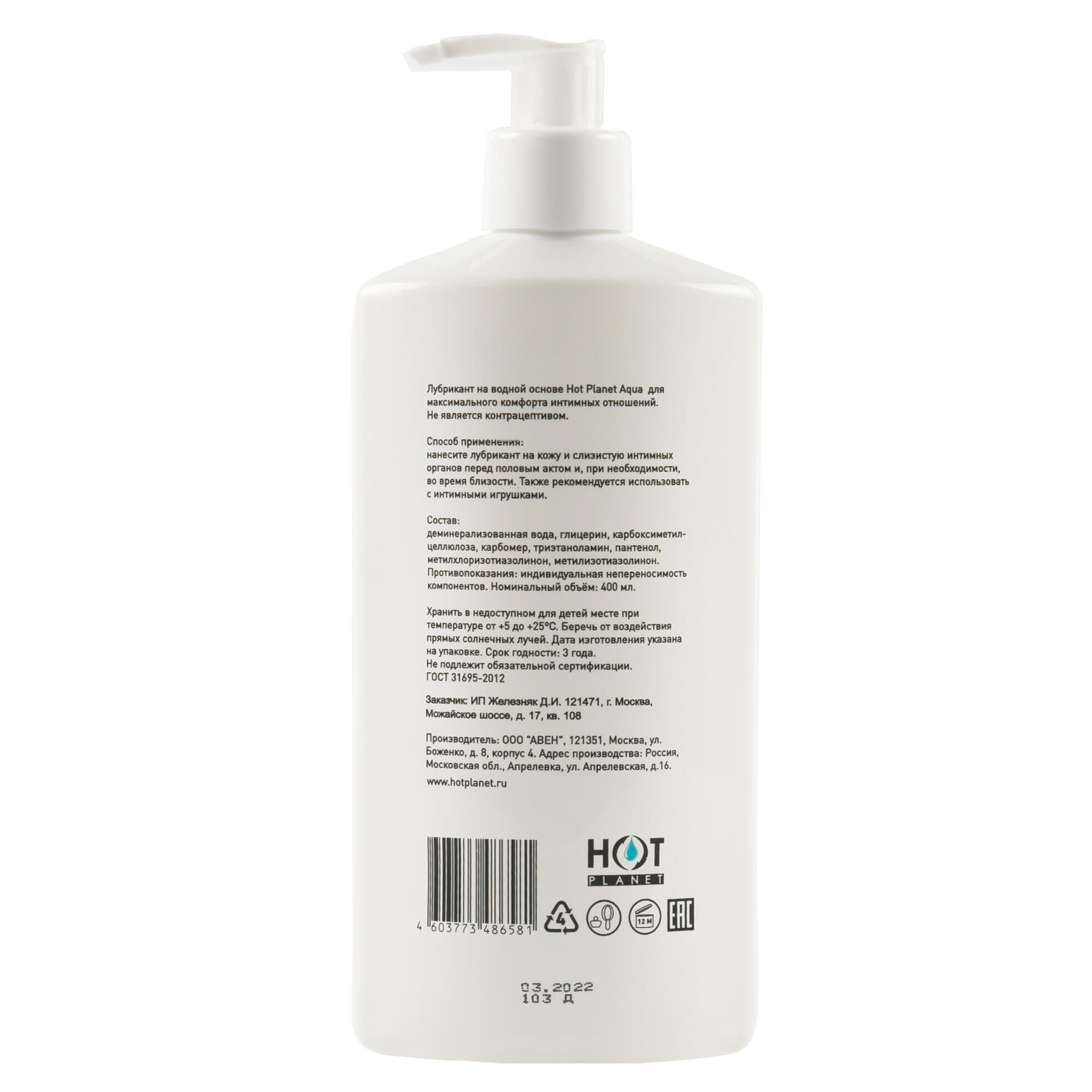 Смазка на водной основе с пантенолом Aqua - 400 мл.