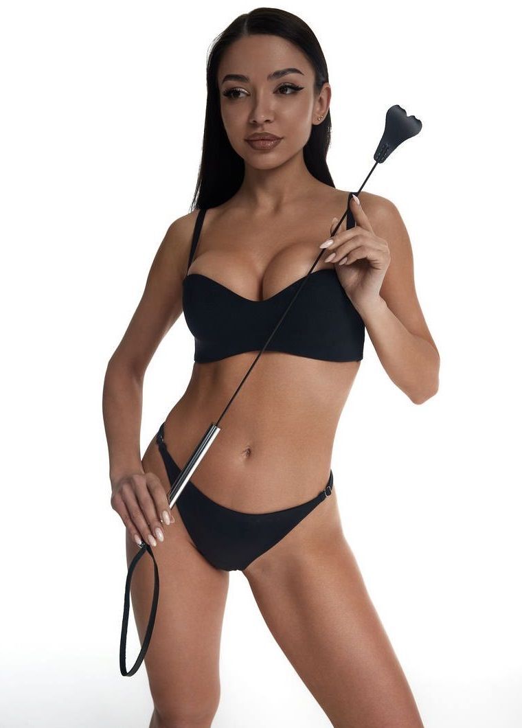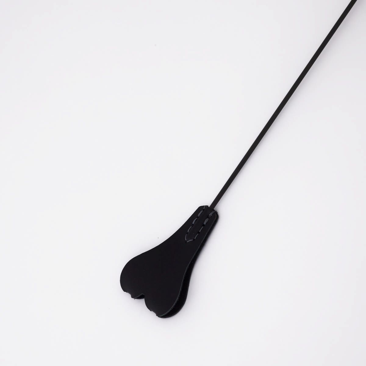 Стек с черным кожаным наконечником в виде сердца и металлической ручкой - 67 см.