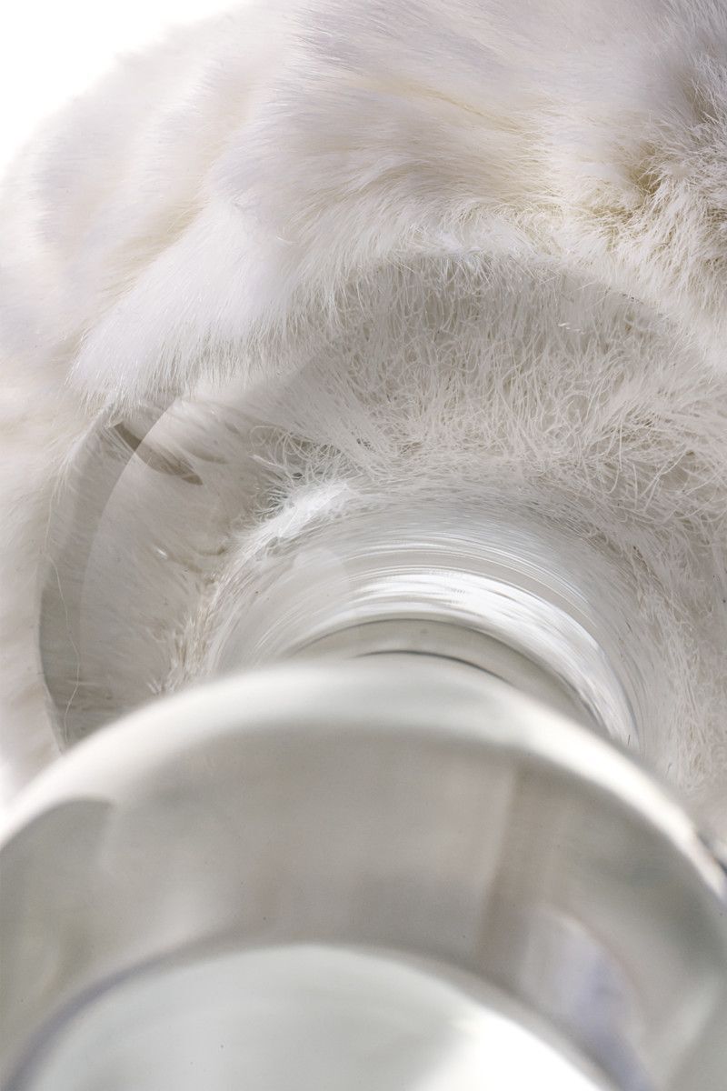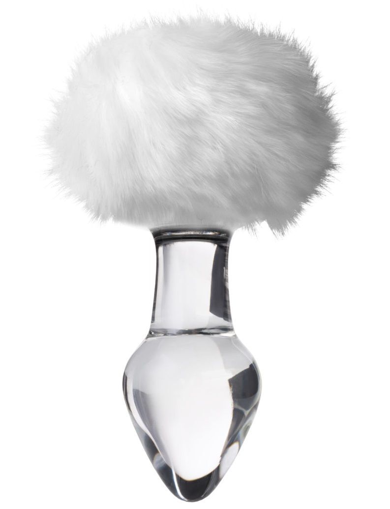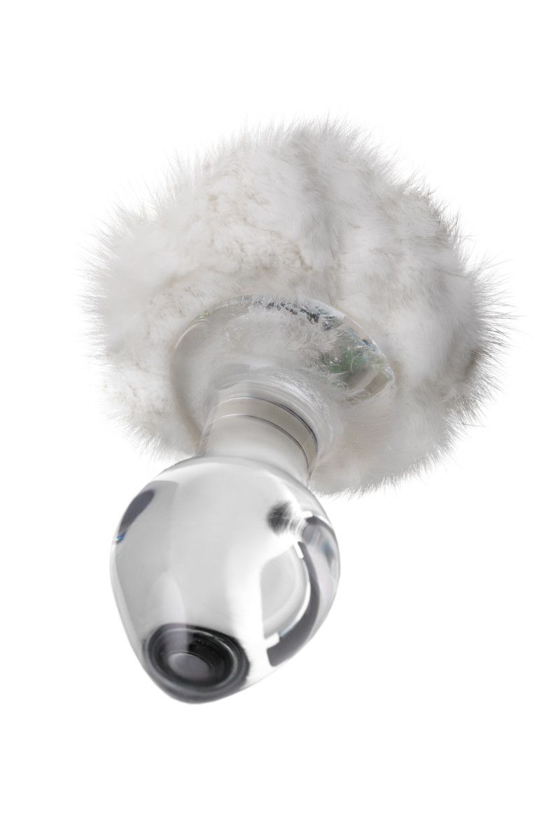 Стеклянная анальная втулка с белым хвостиком - 14 см.
