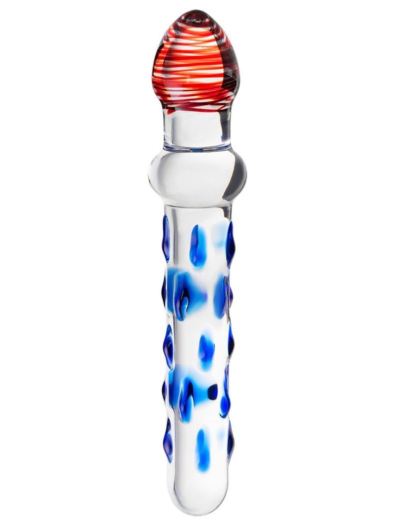 Стеклянный двусторонний фаллоимитатор с шишечками - 20 см.