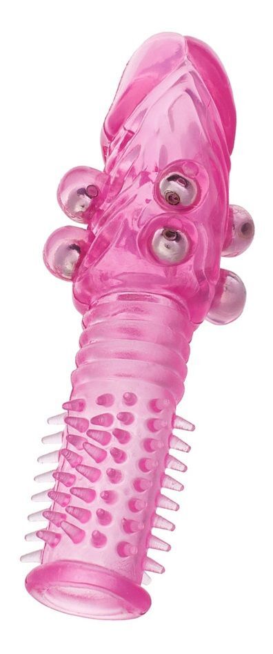 Стимулирующая розовая насадка с шишечками и шипами - 13,5 см.
