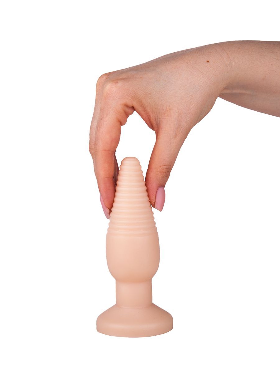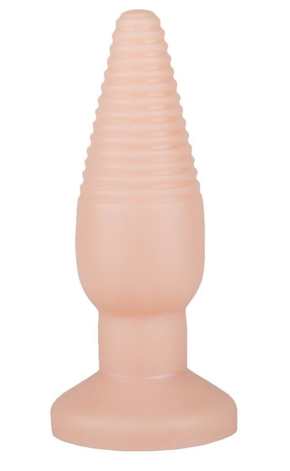 Телесная анальная пробка с рёбрышками - 14 см.