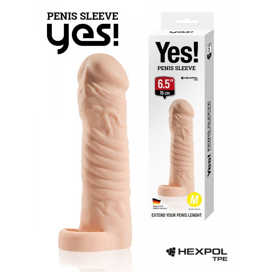 Телесная насадка-удлинитель со вставкой M-размера - 16 см.