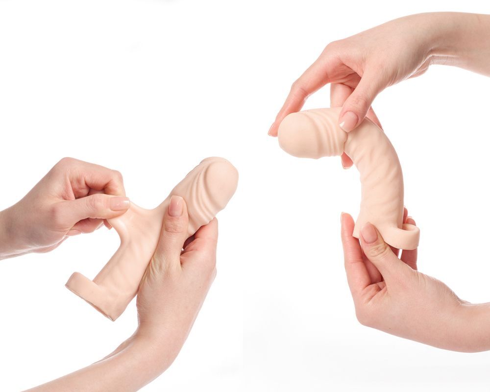 Телесная насадка-удлинитель со вставкой размера S - 16 см.